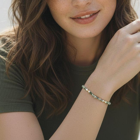 Armband Edelstahl Epidot grün, 2 mm gelb IP beschichtet Muschelperlen, 2 mm verstellbar