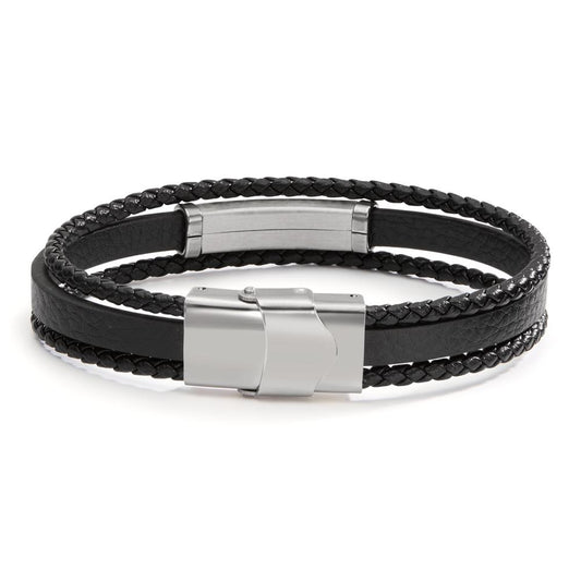 Armband Edelstahl, Leder schwarz IP beschichtet 22 cm