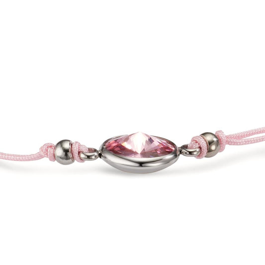 Armband Edelstahl, Textil Zirkonia rosa 14-21 cm verstellbar