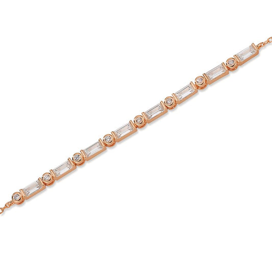Armband Silber Zirkonia 16 Steine rosé vergoldet 15.5-18.5 cm verstellbar