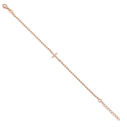Armband Silber Zirkonia 17 Steine rosé vergoldet Kreuz 16-19 cm verstellbar