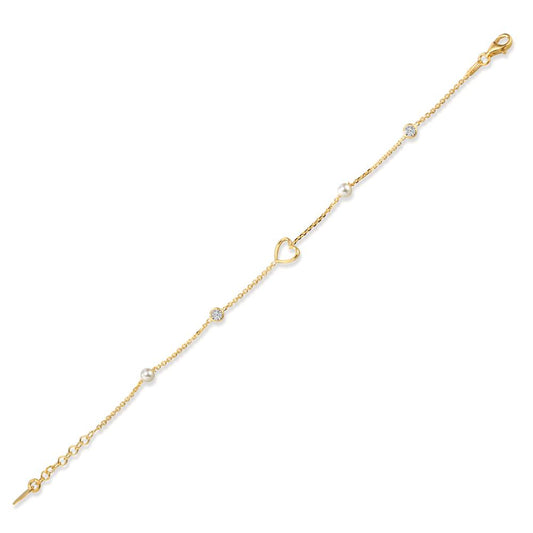 Armband Silber Zirkonia 2 Steine gelb vergoldet shining Pearls, 10 Perlen 3-4 mm Herz verstellbar