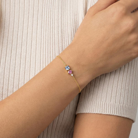 Armband Silber Zirkonia 3 Steine gelb vergoldet 16-19 cm verstellbar