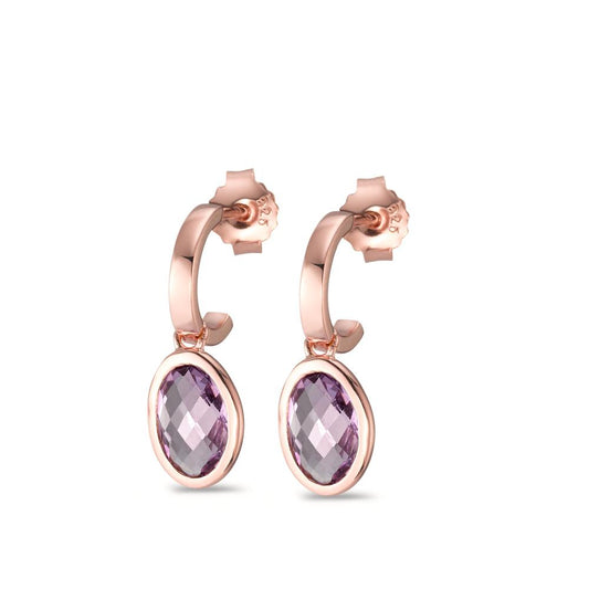 Creolen mit Einhänger Silber Amethyst violett, 2 Steine rosé vergoldet