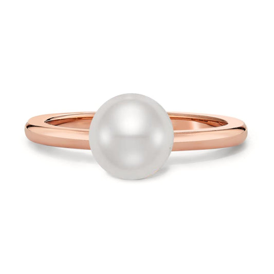 Fingerring Edelstahl rosé IP beschichtet Muschelperle weiss, 6 mm