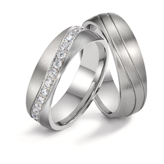 Fingerring Edelstahl Zirkonia 6 Steine IP beschichtet