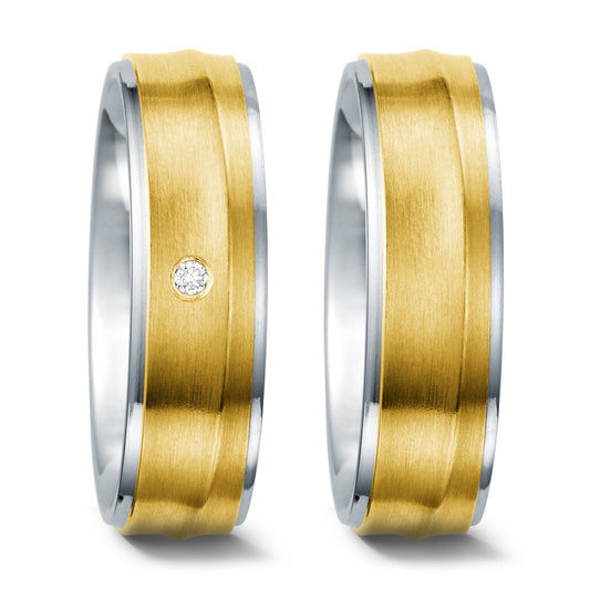 Fingerring Edelstahl, 585/14 K Gelbgold Diamant 0.02 ct, w-pi1