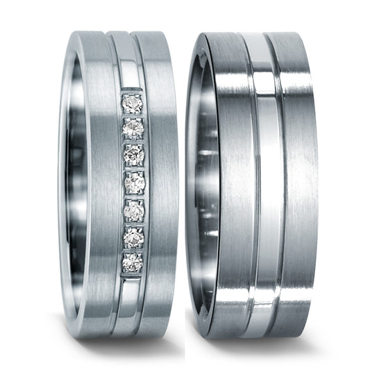 Fingerring Edelstahl, 750/18 K Rotgold Diamanten 0.03 ct, w-si