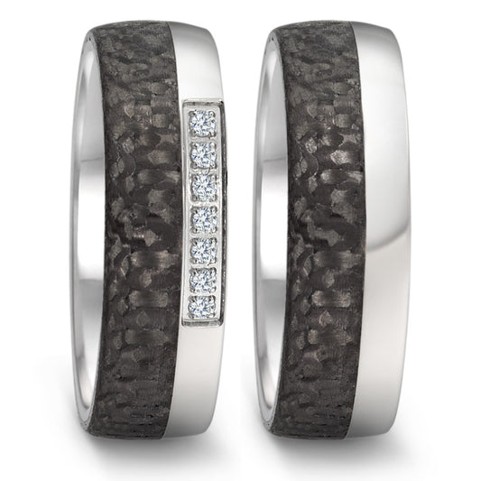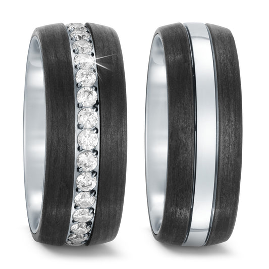 Fingerring Edelstahl, Carbon Diamant 0.02 ct, w-si