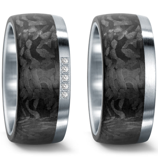 Fingerring Edelstahl, Carbon Diamanten 0.07 ct, w-si
