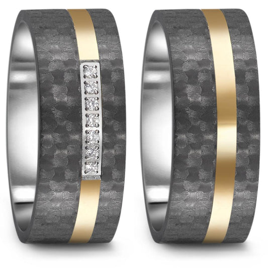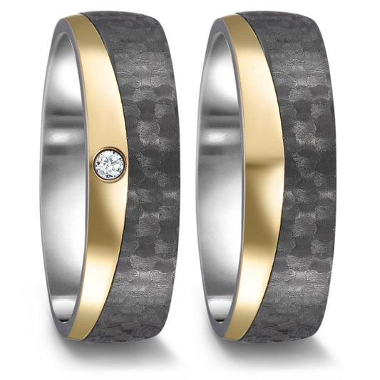Fingerring Edelstahl, Carbon, 750/18 K Gelbgold Diamanten 0.03 ct, w-si
