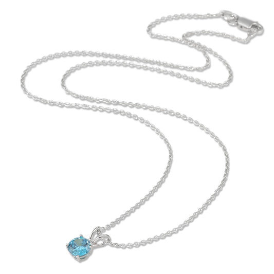 Halskette mit Anhänger Silber synth. Aquamarin 6 mm rhodiniert 38-40 cm verstellbar