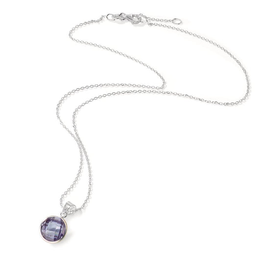 Halskette mit Anhänger Silber Zirkonia lila 40-42 cm verstellbar Ø10 mm