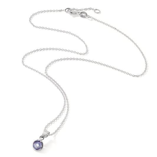 Halskette mit Anhänger Silber Zirkonia lila 40-42 cm verstellbar Ø6 mm