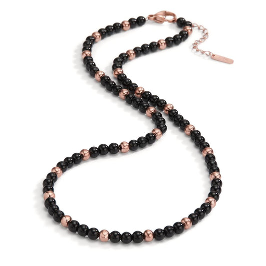 Halskette MUSE Rosé aus Edelstahl mit schwarzem Achat 42-45 cm verstellbar Ø4 mm
