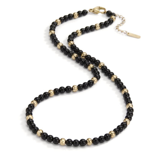 Halskette MUSE Gold aus Edelstahl mit schwarzem Achat 42-45 cm verstellbar Ø4 mm