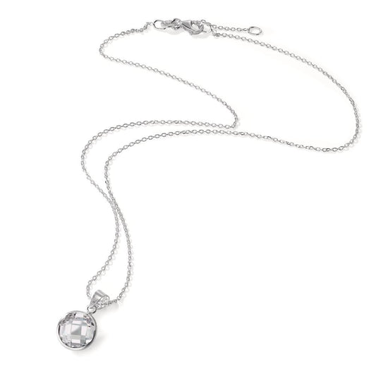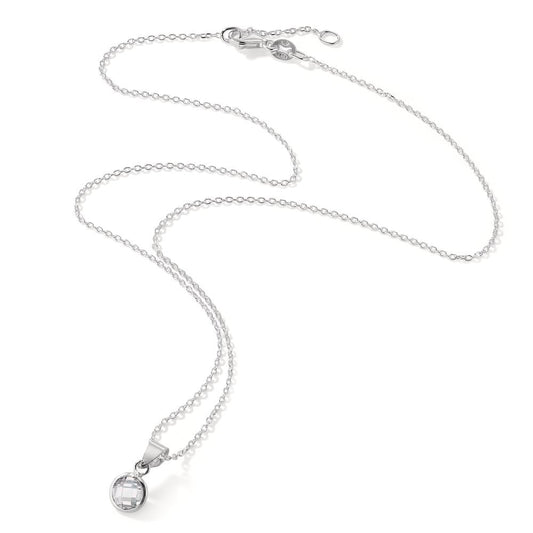 Halskette mit Anhänger Silber Zirkonia weiss, rund, 6 mm rhodiniert 40-45 cm verstellbar