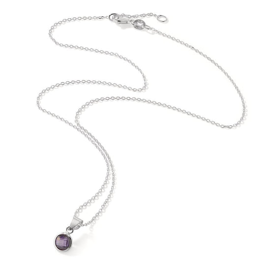 Halskette mit Anhänger Silber Zirkonia violett 40-42 cm verstellbar Ø10 mm
