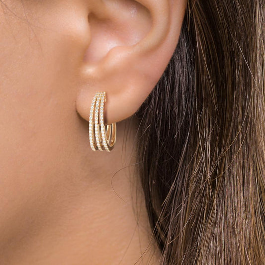 Klappcreolen 750/18 K Gelbgold Diamant 0.125 ct, 26 Steine, w-si