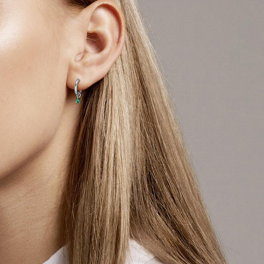 Klappcreolen Silber Zirkonia grün, 2 Steine rhodiniert
