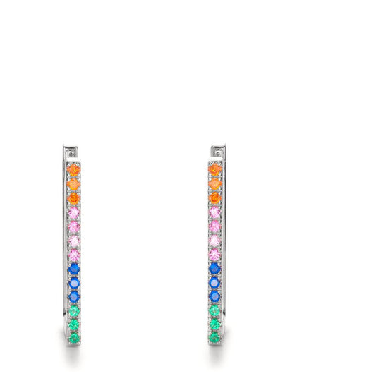 Klappcreolen Silber Zirkonia regenbogenfarbig, 26 Steine rhodiniert