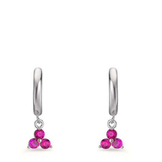 Klappcreolen Silber Zirkonia pink, 6 Steine rhodiniert