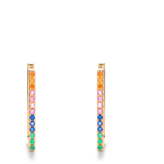 Klappcreolen Silber Zirkonia regenbogenfarbig, 26 Steine gelb vergoldet