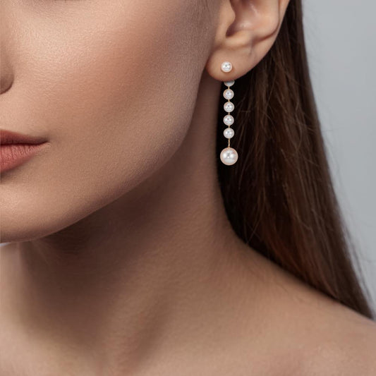 Ohrhänger 750/18 K Gelbgold Süsswasserzuchtperle, 14 Perlen 4-6.5 mm