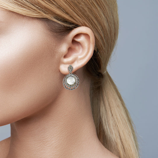 Ohrhänger Silber Markasit patiniert Ø23 mm