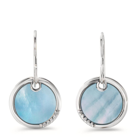 Ohrhänger Silber Zirkonia 10 Steine rhodiniert Perlmutt blau Ø15 mm