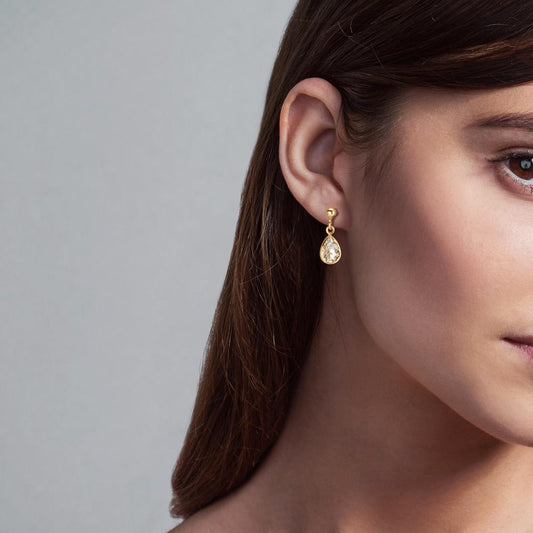 Ohrhänger Silber Zirkonia 2 Steine, Tropfen gelb vergoldet
