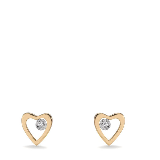 Ohrstecker 750/18 K Gelbgold Diamant 0.01 ct, 2 Steine, w-si Herz Ø5.5 mm