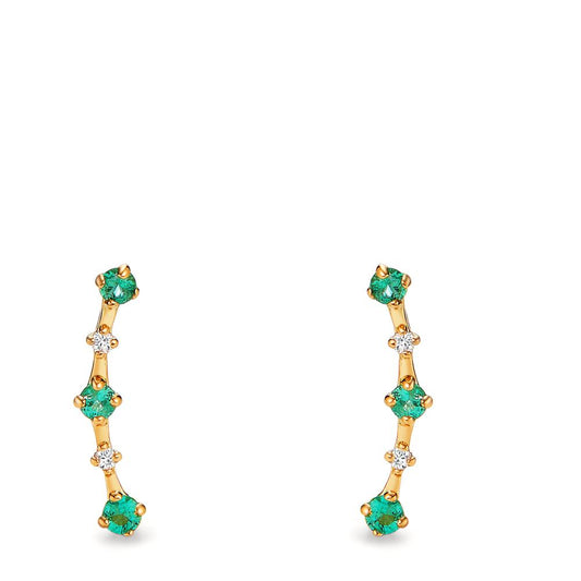 Ohrstecker 750/18 K Gelbgold Smaragd 0.21 ct, 6 Steine, Diamant 0.032 ct, 5 Steine, w-si