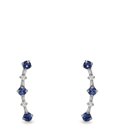 Ohrstecker 750/18 K Weissgold Saphir blau, 2 Steine, Diamant weiss, 34 Steine, w-si Ø7.5 mm