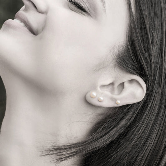 Ohrstecker 750/18 K Weissgold Süsswasserzuchtperle weiss, 3 Perlen 4-6 mm