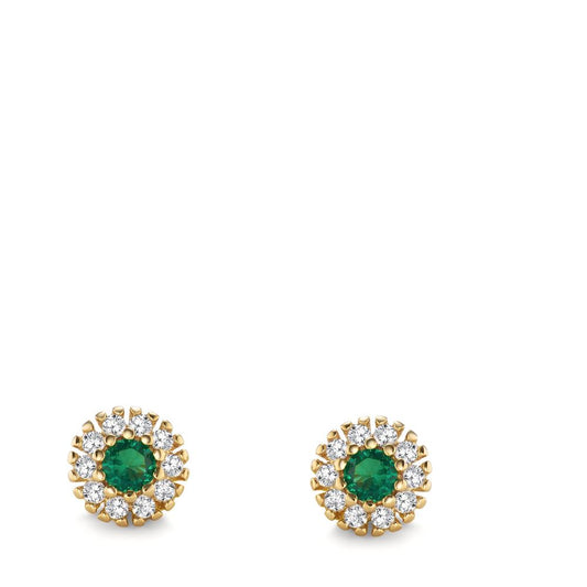 Ohrstecker Bronze Zirkonia grün, 22 Steine gelb vergoldet Ø6 mm