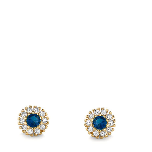 Ohrstecker Bronze Zirkonia blau, 22 Steine gelb vergoldet Ø6 mm