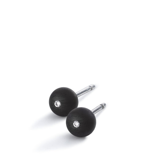 Ohrstecker Globe Ø4mm aus Carbon und Edelstahl, Stift und Verschluss aus Edelstahl