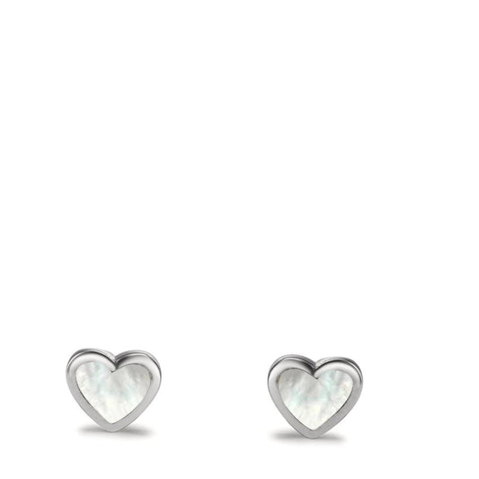 Ohrstecker Silber Perlmutt rosa, 2 Perlen Herz Ø7 mm
