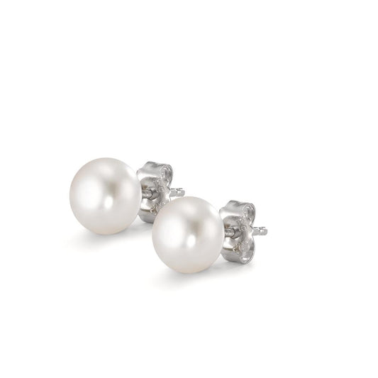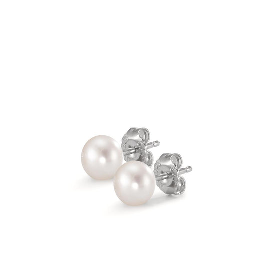 Ohrstecker Silber rhodiniert Süsswasserzuchtperle weiss, 2 Perlen, 7 mm