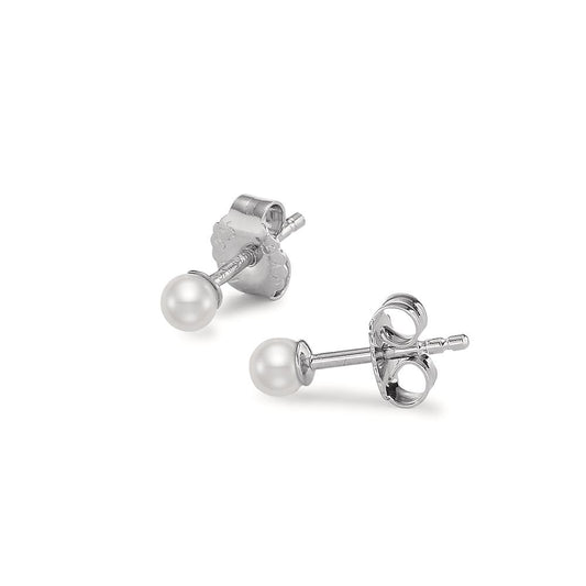 Ohrstecker Silber rhodiniert Süsswasserzuchtperle weiss, 2 Perlen, 3 mm