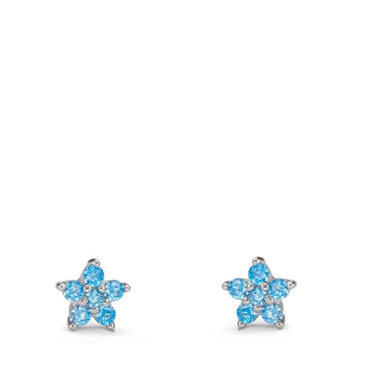 Ohrstecker Silber Zirkonia aqua rhodiniert Ø7 mm