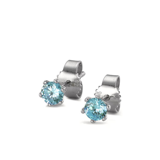 Ohrstecker Silber Zirkonia aqua rhodiniert Ø4.5 mm