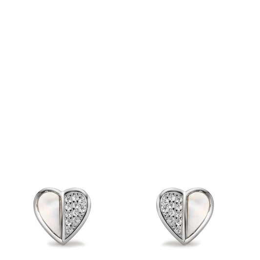 Ohrstecker Silber Zirkonia rhodiniert Perlmutt Herz Ø9 mm