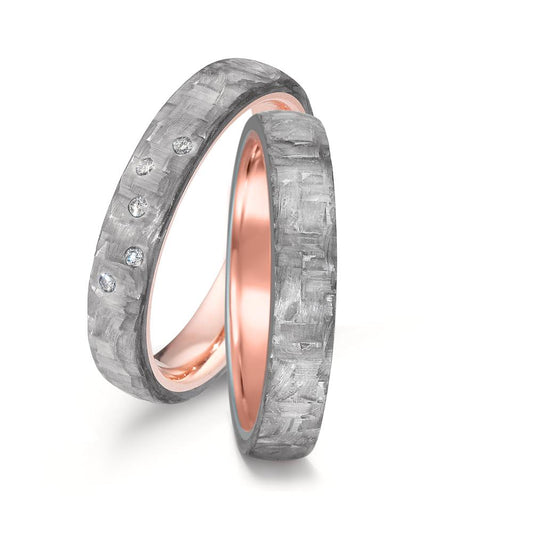 Partnerring 585/14 K Rotgold, Carbon Diamant 0.02 ct, w-si