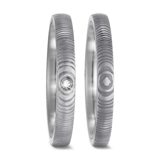 Partnerring Damaszener Stahl, Titan Diamant weiss, 0.02 ct, w-si