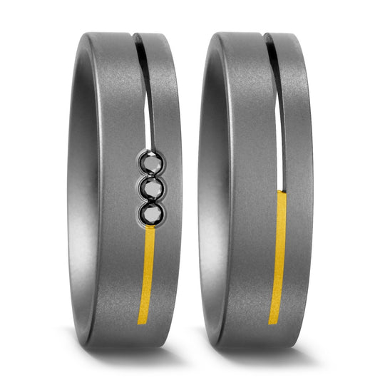 Partnerring Titan, 750/18 K Gelbgold Diamant schwarz, 0.06 ct, 3 Steine, w-si