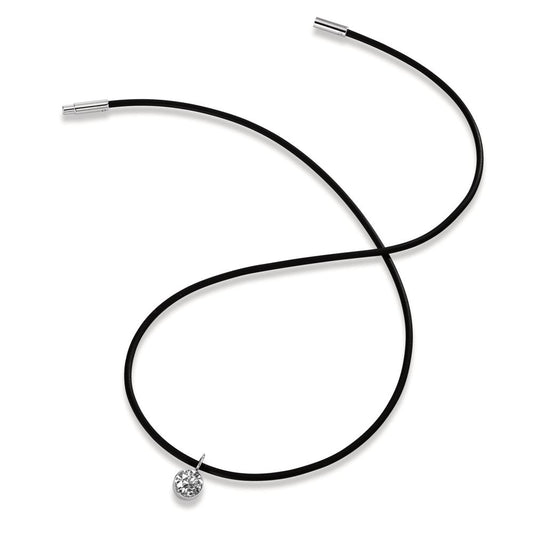 Collier Kautschuk, Edelstahl, Silber Zirkonia weiss rhodiniert 42 cm