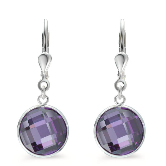 Ohrhänger Silber Zirkonia violett, 2 Steine Ø10 mm