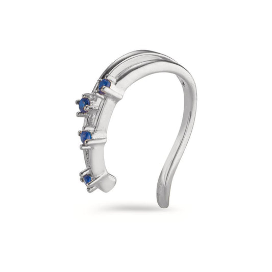 Ohrklemme Silber Zirkonia blau, 4 Steine rhodiniert Ø10 mm